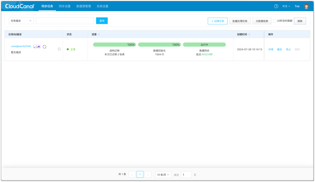 继续点击下一步,直到创建任务。 任务结构迁移、全量迁移、增量同步,正常运行。