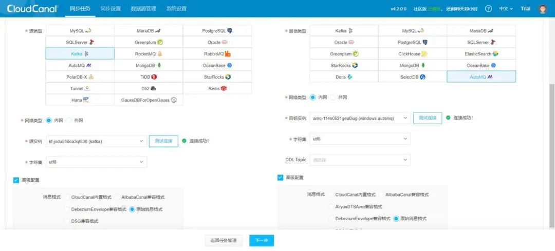 Kafka 节点:一个已部署并运行的 Kafka 节点,确保 Kafka 节点能够正常接收和处理消息,Kafka节点的网络配置允许与 CloudCanal 服务通信。