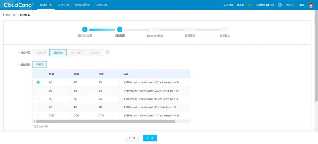 2. 选择任务规格,这取决于你需要迁移的数据量大小: