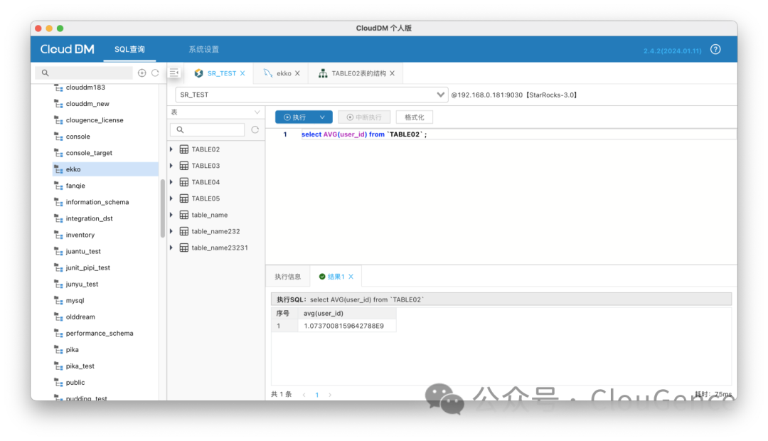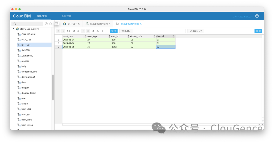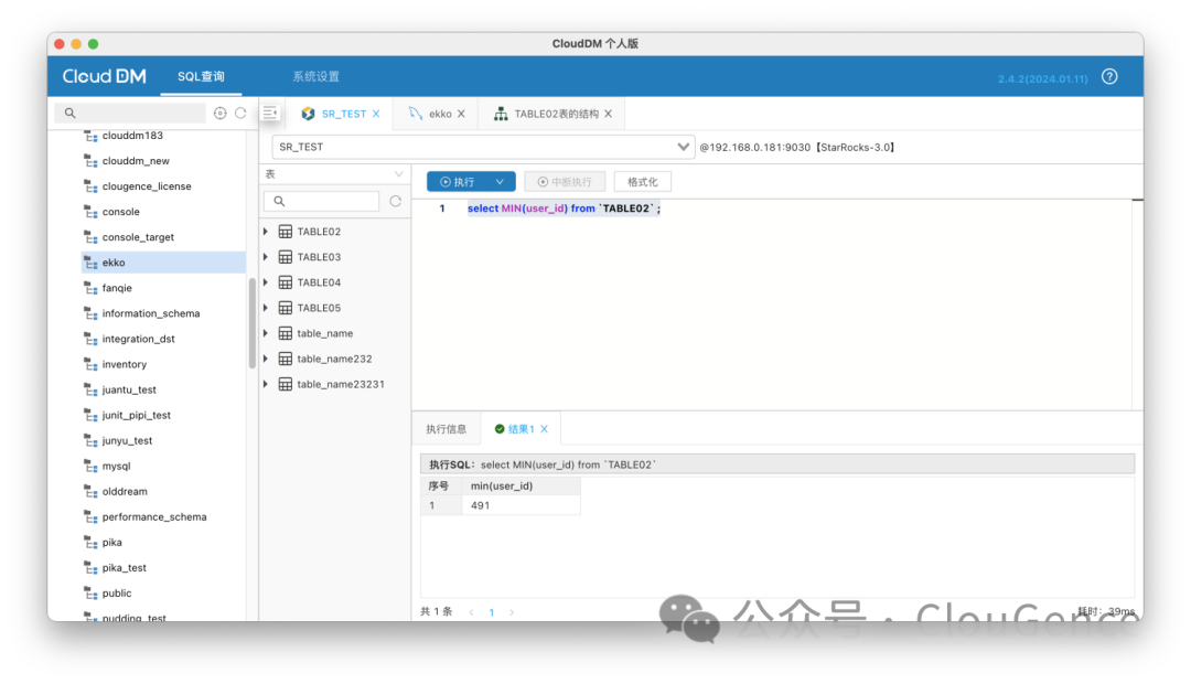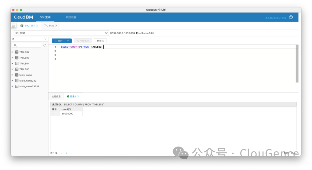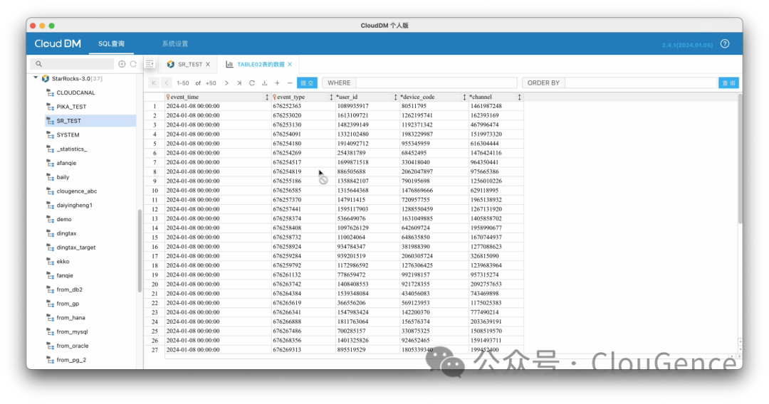 本文我们简要介绍了 StarRocks 明细模型是什么,以及如何通过 CloudDM 进行可视化建表及数据写入操作,然后我们对比了 min、max、agv、count 四个聚合函数在 MySQL 和 StarRocks 上的性能差异,感受了 StarRocks 的魅力。相信在包含 MySQL 的高性能在线业务系统中,如果存在使用聚合、join等分析场景,叠加 StarRocks 使用将会是一个不错的方案。