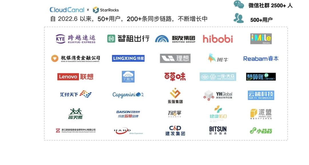 在和 StarRocks 合作的近半年中,我们积累了50+ 用户,200条同步链路,且仍在不停增长。CloudCanal 跟 StarRocks 一起给用户带来的价值也在不断增加。