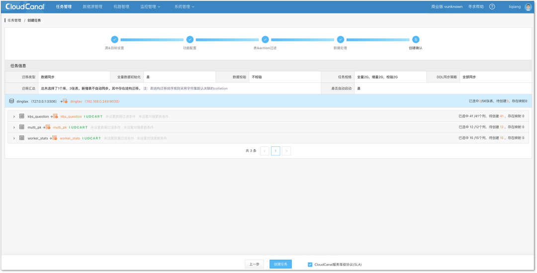 创建任务:做完以上这五步,对数据迁移同步的配置即将结束。