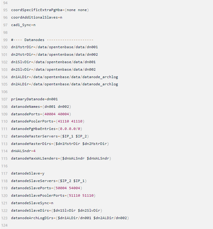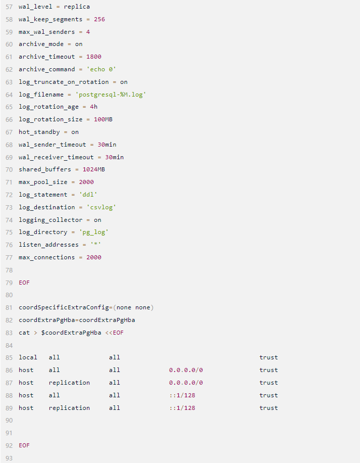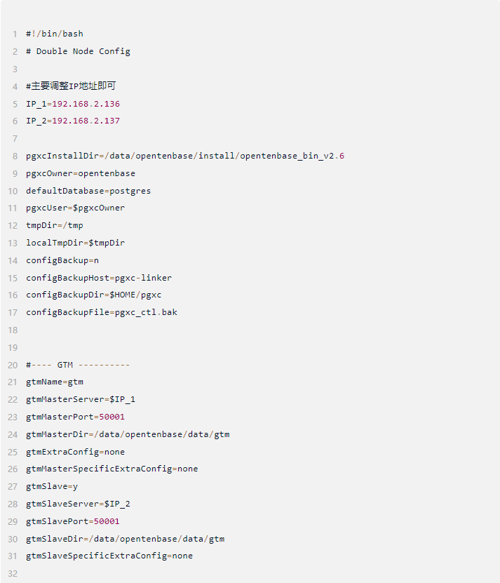 如下,是结合上文描述的IP,端口,数据库目录,二进制目录等规划来写的pgxc_ctl.conf文件。