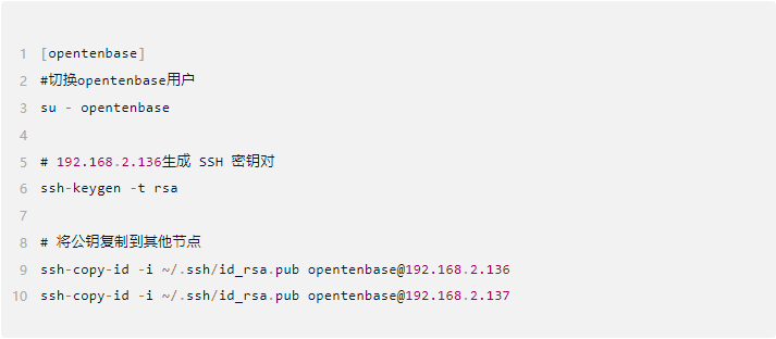 互信为了方便后续操作,建议配置opentenbase机器间的 SSH 互信: