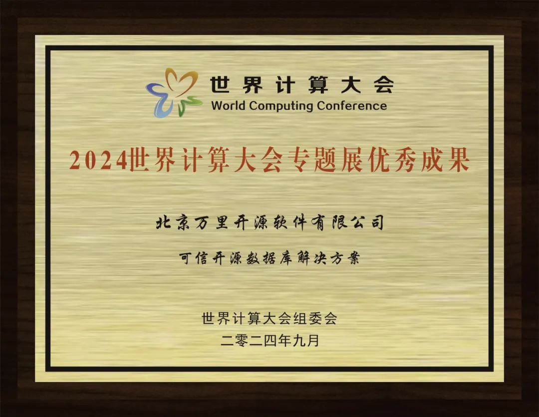 万里数据库作为国内知名的数据库产品与解决方案提供商受邀参展,凭借领先的数据库技术与可信开源数据库解决方案,荣获“2024世界计算大会专题展优秀成果奖”。