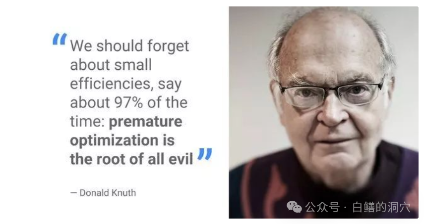 Oracle ACS观点的背景是计算资源十分昂贵,研发团队技术能力不足,应用系统复杂而高聚合,应用开发迭代缓慢,缺乏敏捷开发能力。而Knuth观点的背景是开发十分敏捷,应用系统微服务化,计算资源在云上弹性获得,修复性能BUG十分快捷。在这两种不同的背景下,对于同一个问题自然就有不同的答案。