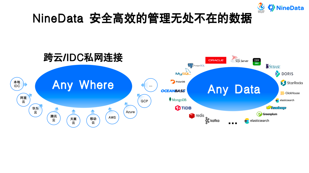 NineData 有两个理念,分别是 AnyWhere 和 AnyData,致力于帮助帮助客户实现安全高效的管理无处不在的数据: