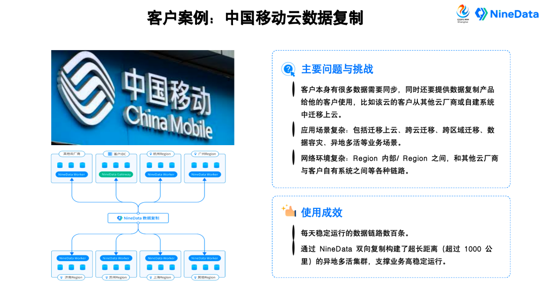 AnyWhere:在 2021 年开始这项工作时,遇到很多客户有多云和混合云的需求,即数据既在云上又在本地 IDC。NineData 的理念是能够将所有主流的云平台串联起来,目前与移动云合作,看到许多客户从其他云逐渐迁移到移动云,也有从 IDC 迁移到移动云的情况,中间可能会处于混合云状态。