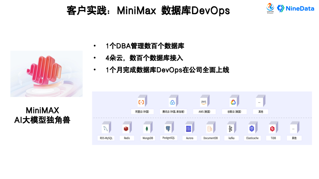 本次 GOPS2024 上海站活动中,NineData 展示了在多云多源数据管理领域的领先技术和丰富实践经验。从架构趋势分析到技术产品介绍,再到客户实践案例展示,体现了 NineData 在应对复杂数据管理和运维需求方面的优势,为行业发展提供了有价值的参考和借鉴。