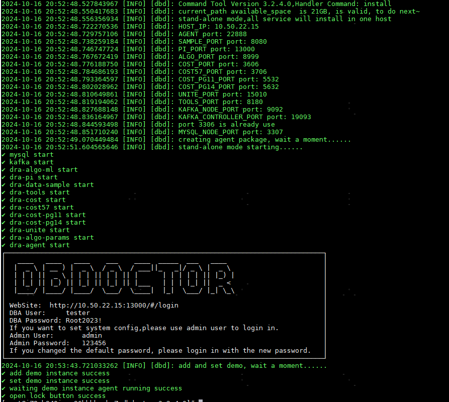 #解压安装包并执行一条命令即可部署完成./dbd -I