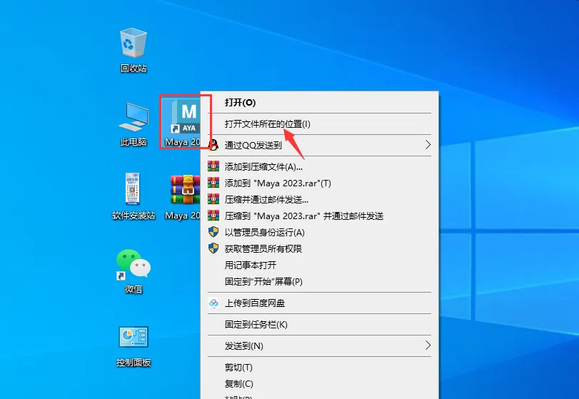 10.右键Maya2023图标,选择“打开文件所在位置”。
