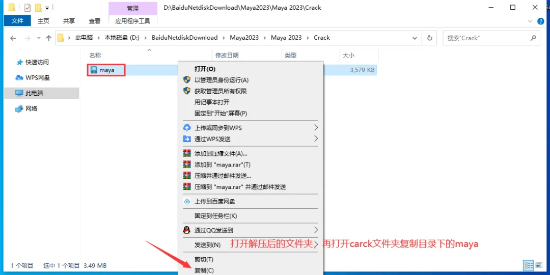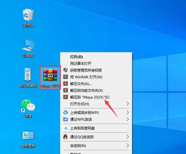 1.通过文章末尾处下载软件,鼠标右键【Maya 2023】压缩包,选择解压到Maya 2023。