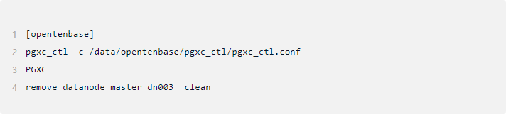 使用 pgxc_ctl 工具移除新的 DN 节点: