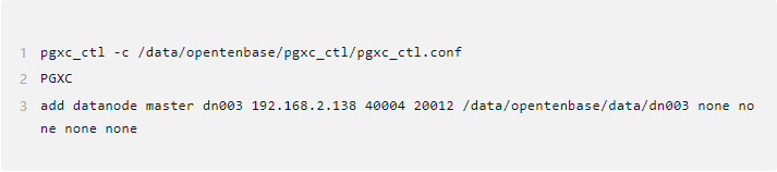 pgxc_ctl 是 OpenTenBase 提供的一个命令行工具,用于管理和操作集群。添加 DN(Data Node)节点是扩展集群存储和处理能力的常见操作。