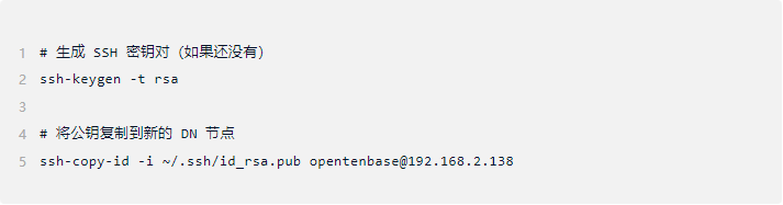 确保现有的集群节点可以无密码访问新的 DN 节点: