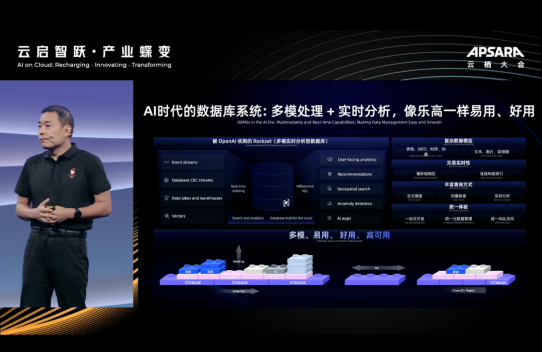 提出观点:过去一年最大的是带来多模数据处理+实时分析两大诉求。阿里云数据库希望给客户提供的是类似搭建乐高一样,易用,好用,高可用。
