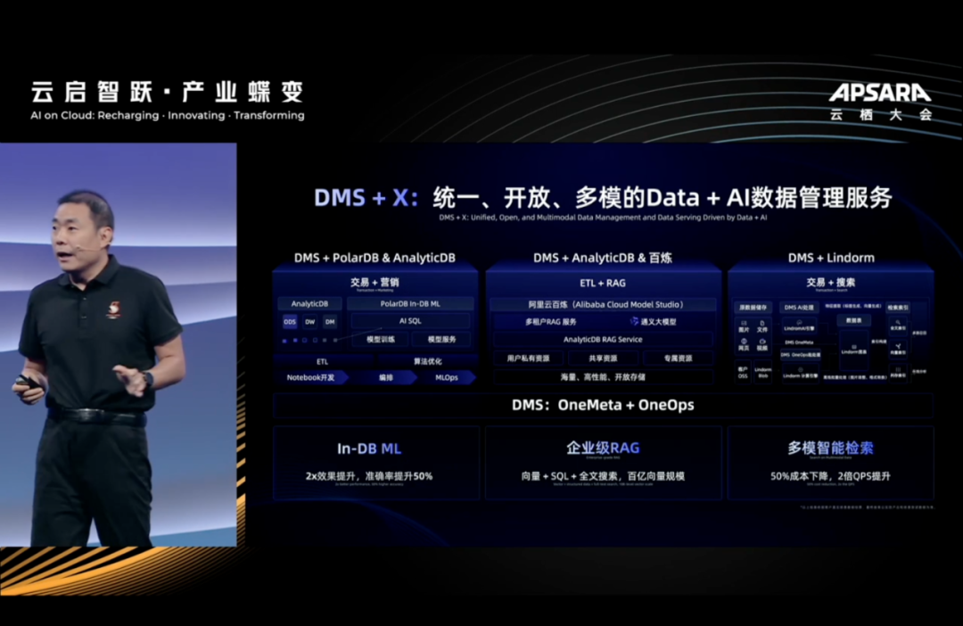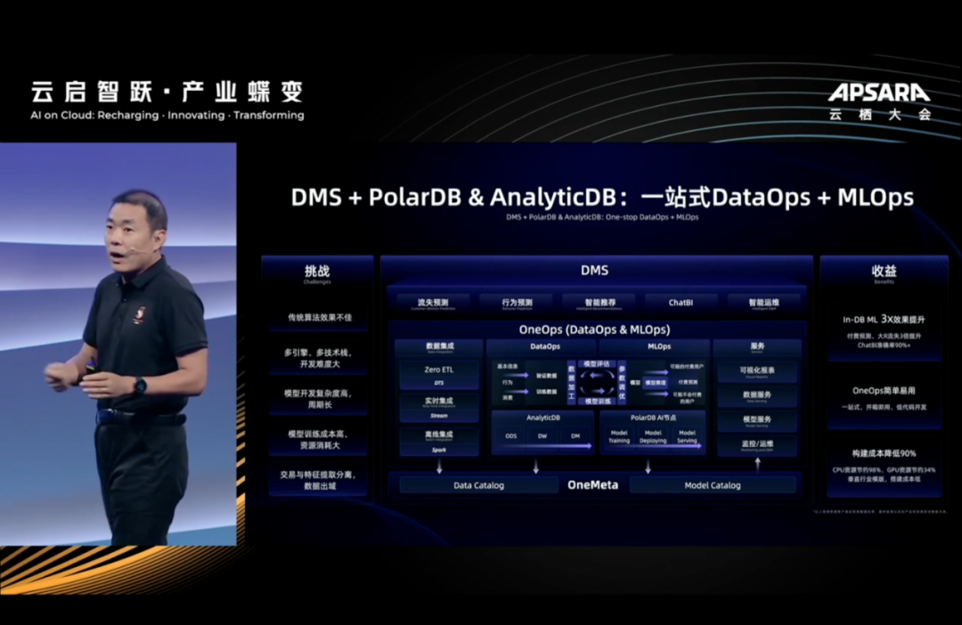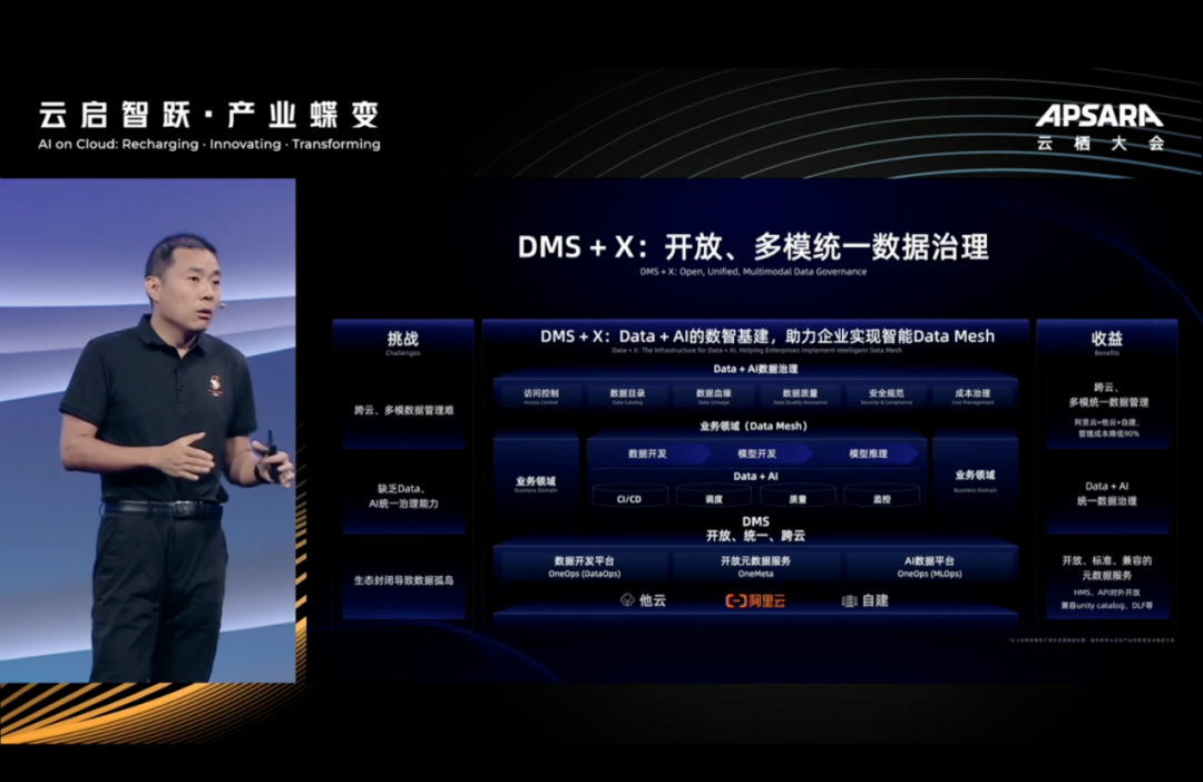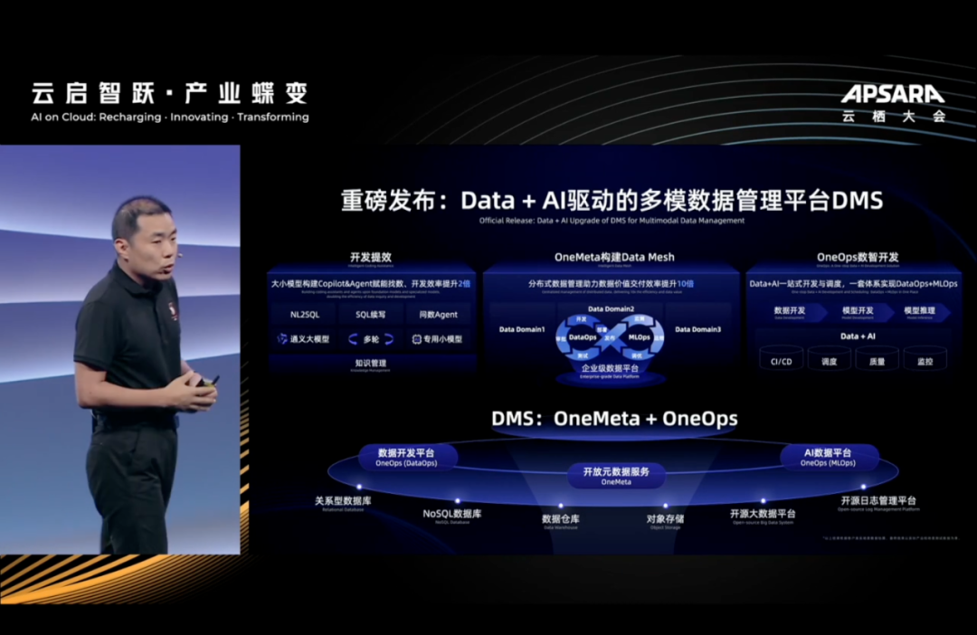 重磅发布 DMS 新能力,提出 OneMeta,OneOps 理念,不光是支持阿里云的自身的数据库,对开源的也支持的,也就是所谓的 DMS+ X