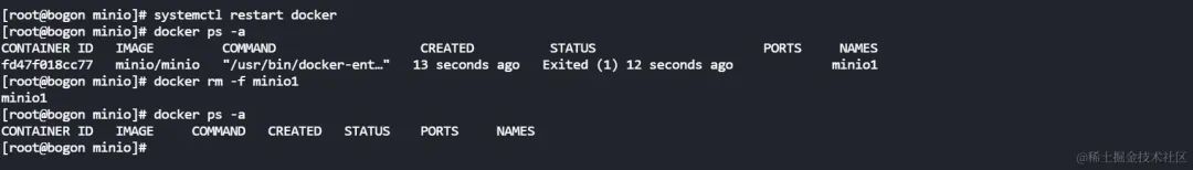 docker rm -f minio #根据容器名删除容器(自己注意辨别自己的)