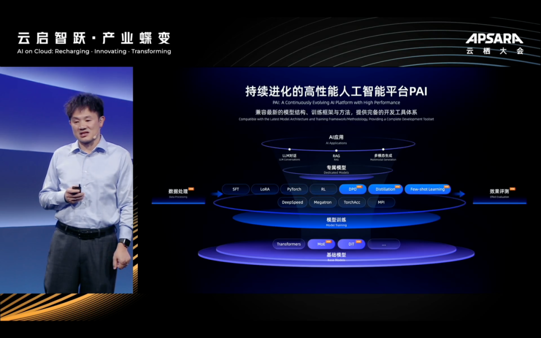 人工智能平台 PAI,新增了基础模型,数据处理,效果评测,模型调优等能力。