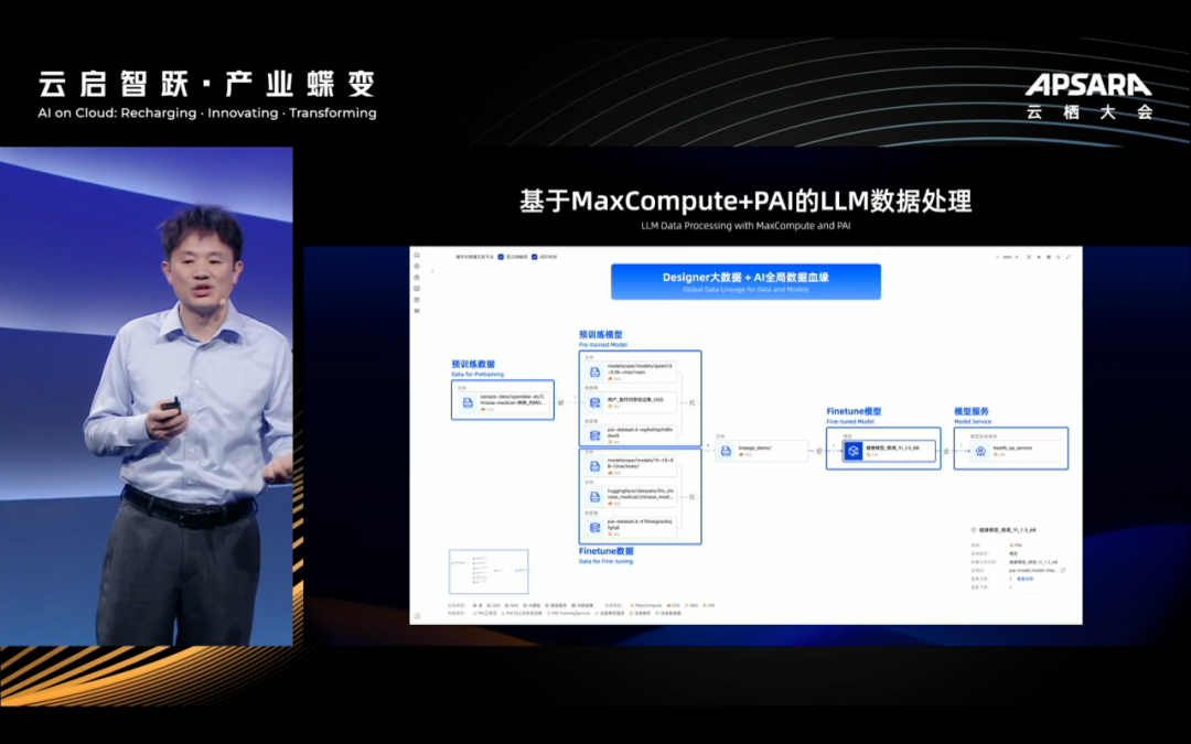 快评:这里想讲的是 Dataworks+MC 可以管数据血缘,然后送给 PAI 处理吧。说实话没看到 MC 在哪里?知道的同学帮忙留言指正一下。