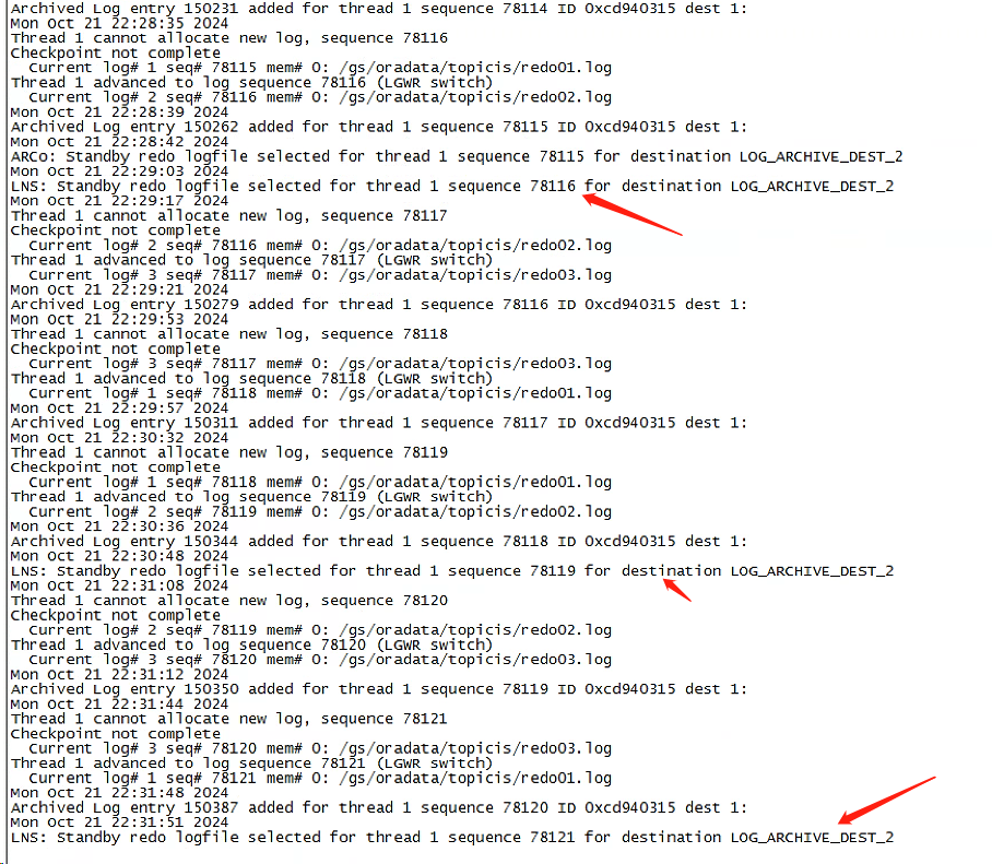 LNS: Standby redo logfile selected for thread 1 sequence 79200 for destination LOG_ARCHIVE_DEST_2