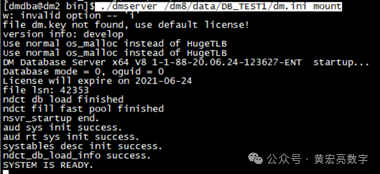 bin]$ ./dmserver /dm8/data/DAMENG/dm.ini mount