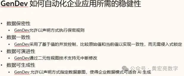数据可演进性,企业应用数据需要不断发展以满足新需求,而不会破坏现有应用。GenDev支持无中断修改。添加新的键值对非常简单,无需修改后端模式,就像添加一列一样。挑战在于修改当前的数据。仍然通过二元性视图技术,GenDev通过在应用和数据之间增加一层抽象(添加兼容视图),可以对现有应用程序隐藏对底层模式的更改。二元性视图就像数据的微服务。与微服务一样,它们都公开API来提供模块独立性。但二元性视图还为跨多个模块使用的数据提供声明性演进和共享数据的ACID一致性。