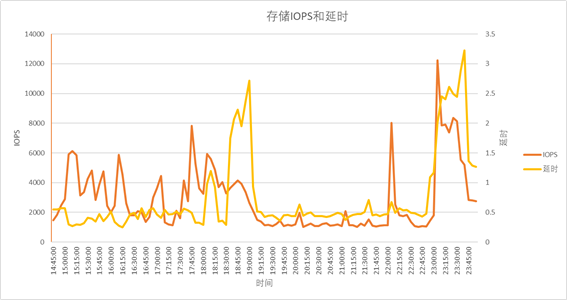 图 10. 正常运行状态下的存储 IOPS 和延时