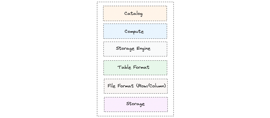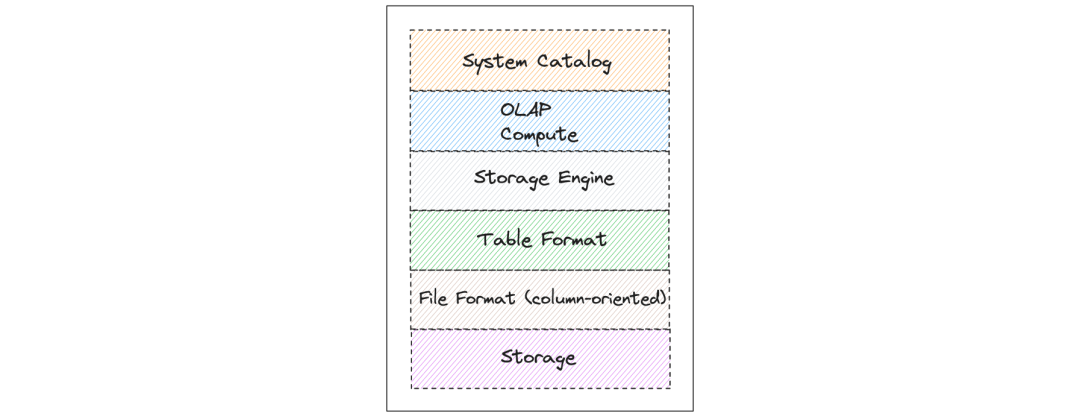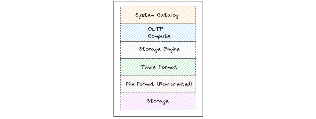 传统上,数据库中没有与术语 "表格式" 等效的术语。它们仅指一种存储格式,这是从用户那里抽象出来的较低层技术细节。但是,本着本博客的重点,我们将 OLTP 中使用的存储格式分为文件和表格式。OLTP 数据库可以提炼成六个技术组件,包括存储、文件格式、表格式、存储引擎、计算引擎和系统目录。这些组件捆绑到一个系统中,用于事务处理。