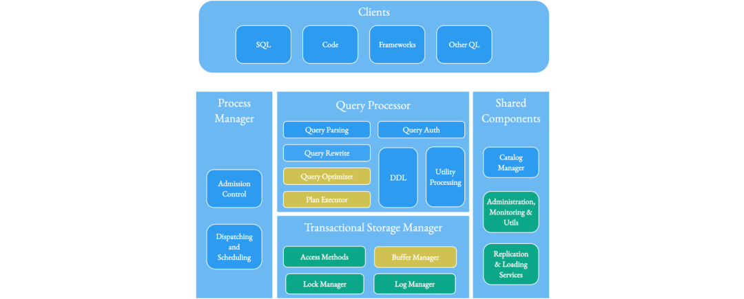 OLAP 数据库擅长管理结构化数据,对于进行复杂的查询和分析至关重要,这是商业智能 (BI) 工作负载的基础。与 OLTP 类似,基于 OLAP 的系统将 6 个技术组件捆绑到一个单元中;请注意文件格式现在是面向列的,而不是面向行的,并且计算引擎针对不同的目的进行了优化。
