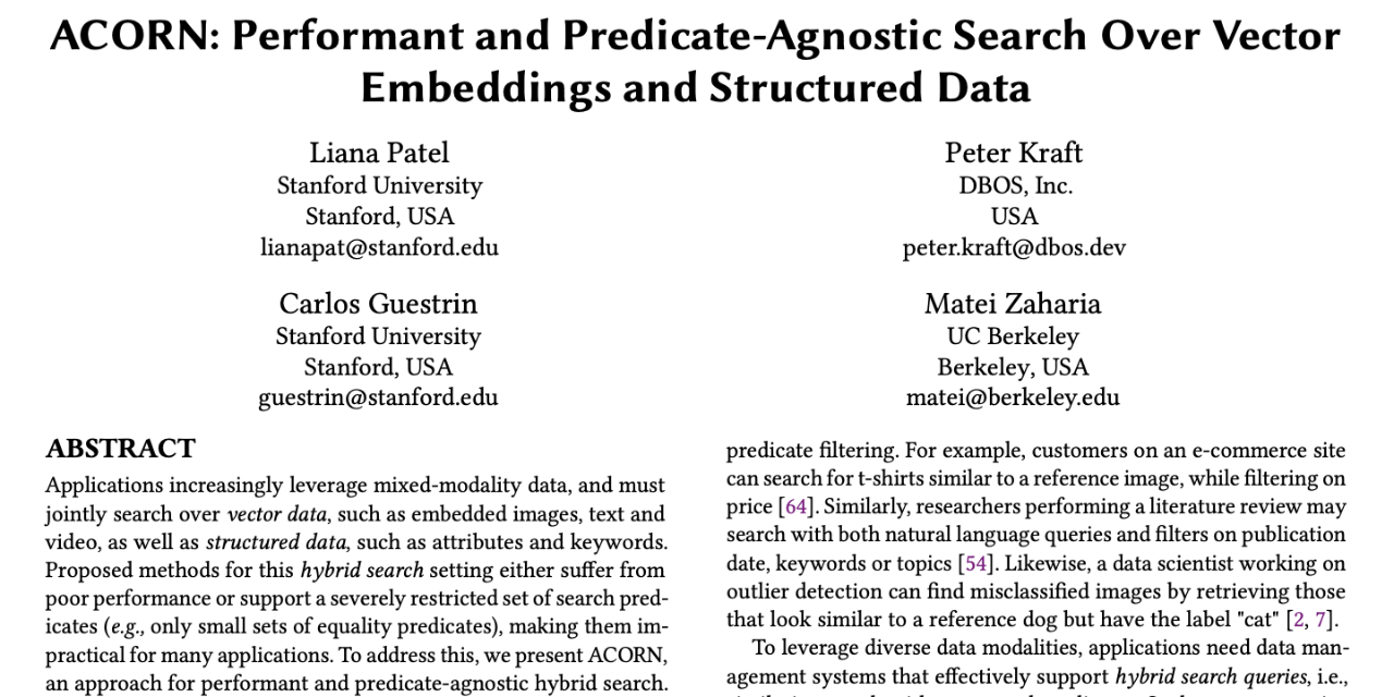 ACORN:嵌入向量和结构化数据上的高性能混合搜索