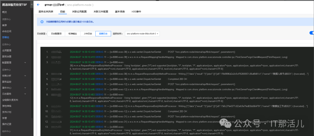 2)查看部署组服务容器日志