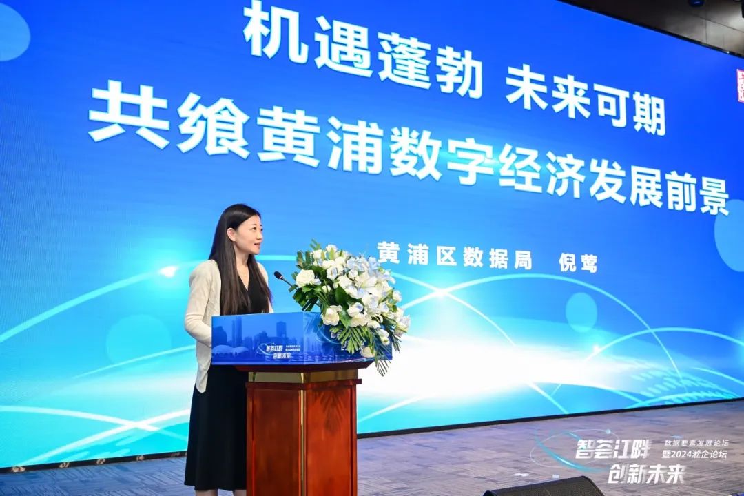 黄浦区数据局局长倪莺首先作了《机遇蓬勃未来可期 共飨黄浦数字经济发展前景》主题分享。她首先对在“数字中国”框架下,黄浦区数据产业发展的现状与前景进行深入阐述,并表示黄浦区将在持续加大数字产业政策支持和金融服务供给力度的同时构建全方位的企业服务体系,不断强化数据基础制度建设,推动数据要素市场化、价值化,为区域数字经济发展注入强劲动力。