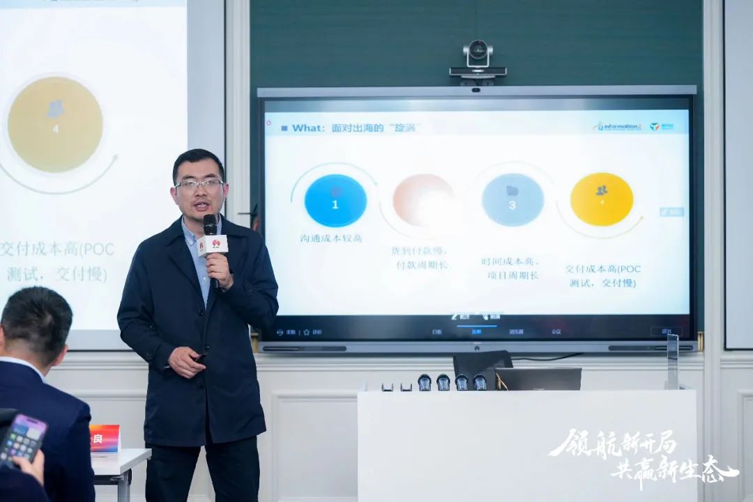 出海业务圆桌会议环节,刘伟作《英方&华为云海外拓展之路》的主题分享。刘伟在会上分享了英方能力,并重点阐述了与华为的合作历程,从起初的小范围合作到后来的双向奔赴。目前,英方已成为华为云的重要合作伙伴,双方联合发布了多款解决方案及技术白皮书,为行业发展提供指引。