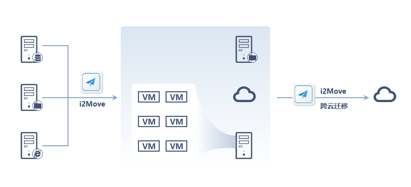 针对操作系统和应用迁移,英方i2Move 可为用户提供由生产服务器向本地或云端目标服务器的整机热迁移服务。通过i2Move,用户可以在业务不停机的情况下,实现系统和数据实时复制,复制完成后可快速切换系统,由新主机接管业务。迁移过程不受服务器形态的限制,同时保证生产服务器和目标服务器的实时一致。