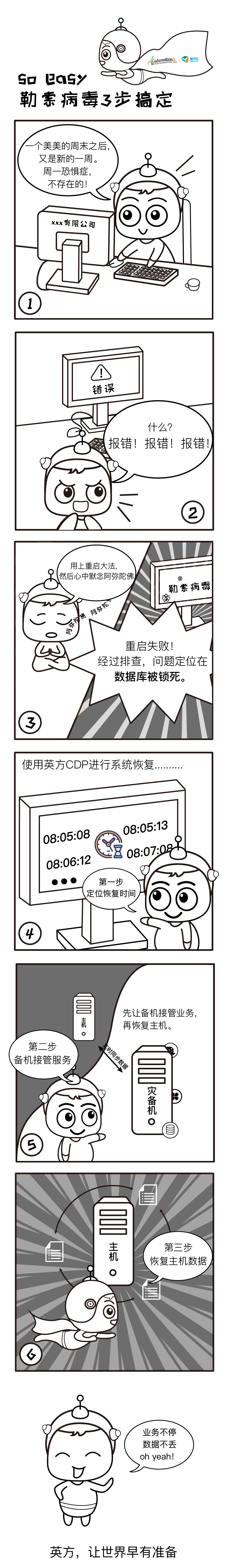 专注于数据保护,英方软件多年来始终致力于勒索病毒防御相关技术的研究。通过英方i2CDP持续数据保护与恢复系统,可以实现在数据复制的同时,将数据的变化以日志的方式记录并保存。当生产端的数据被误操作或感染病毒时,用户可将数据从目标端恢复到生产端,恢复到故障前的指定时刻,确保业务能够尽快继续正常运行。