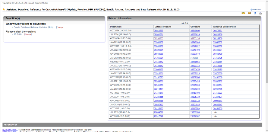 Assistant: Download Reference for Oracle Database/GI Update, Revision, PSU, SPU(CPU), Bundle Patches, Patchsets and Base Releases (Doc ID 2118136.2)