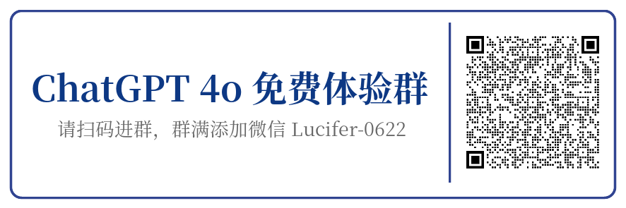 PS: 如果想免费体验 ChatGPT 4o,可以扫码进群,我会在每个工作日免费发放 Plus 会员的体验授权码。社群中还有准备好的 GPT 保姆级教程,进群后记得查看群公告噢!