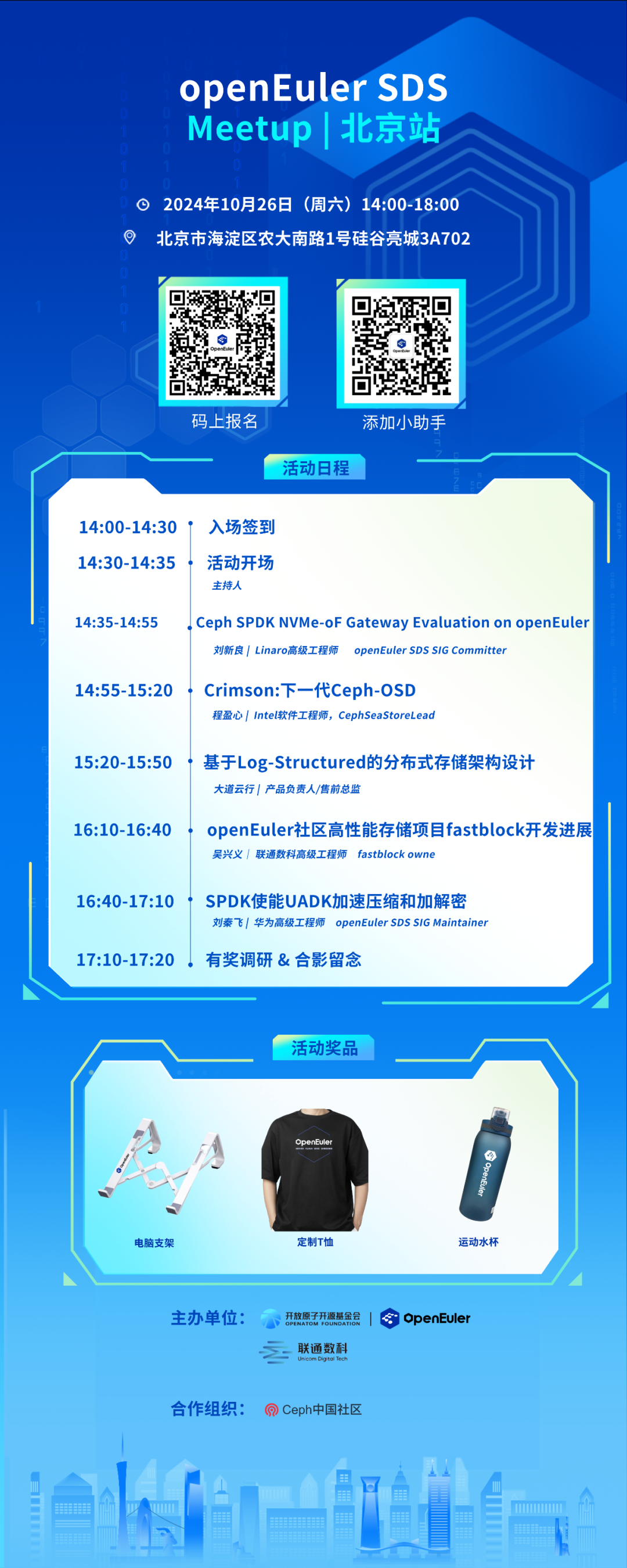 OpenAtom openEuler(简称"openEuler")社区将于10月26日在北京举办一场SDS交流的Meetup。本次Meetup由openEuler sig-SDS与联通数科联合举办的!致力于为开发者和用户搭建一个深入探讨和交流分布式存储技术的专业平台。与会的openEuler SDS领域的资深专家和热情开发者,将分享在分布式存储技术实际应用中的宝贵经验和精彩案例,活动还将展示openEuler SDS的最新发展动态,并展望未来的技术趋势。欢迎大家踊跃报名,与现场嘉宾和贡献者分享交流SDS相关技术实践和畅想。