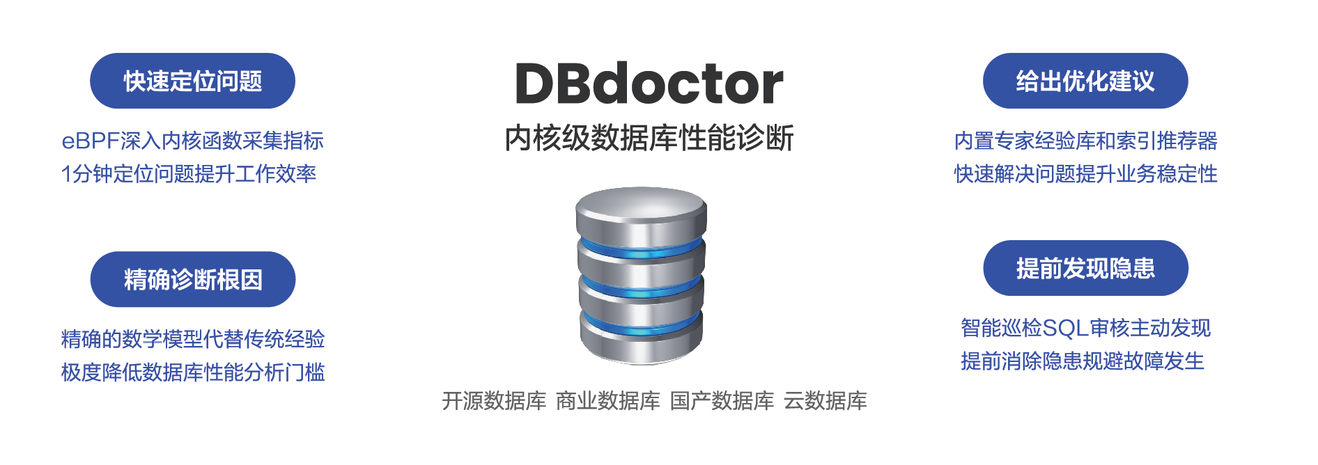 DBdoctor 是一款内核级数据库性能诊断软件。针对数据库性能诊断门槛高、耗时长的问题,提供快速易用的解决方案,深入到数据库内核,实时海量数据分析,提供精准的诊断分析和优化建议。