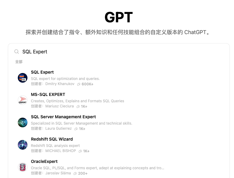 可以发现有很多关于 SQL 优化的 GPT 可供使用。