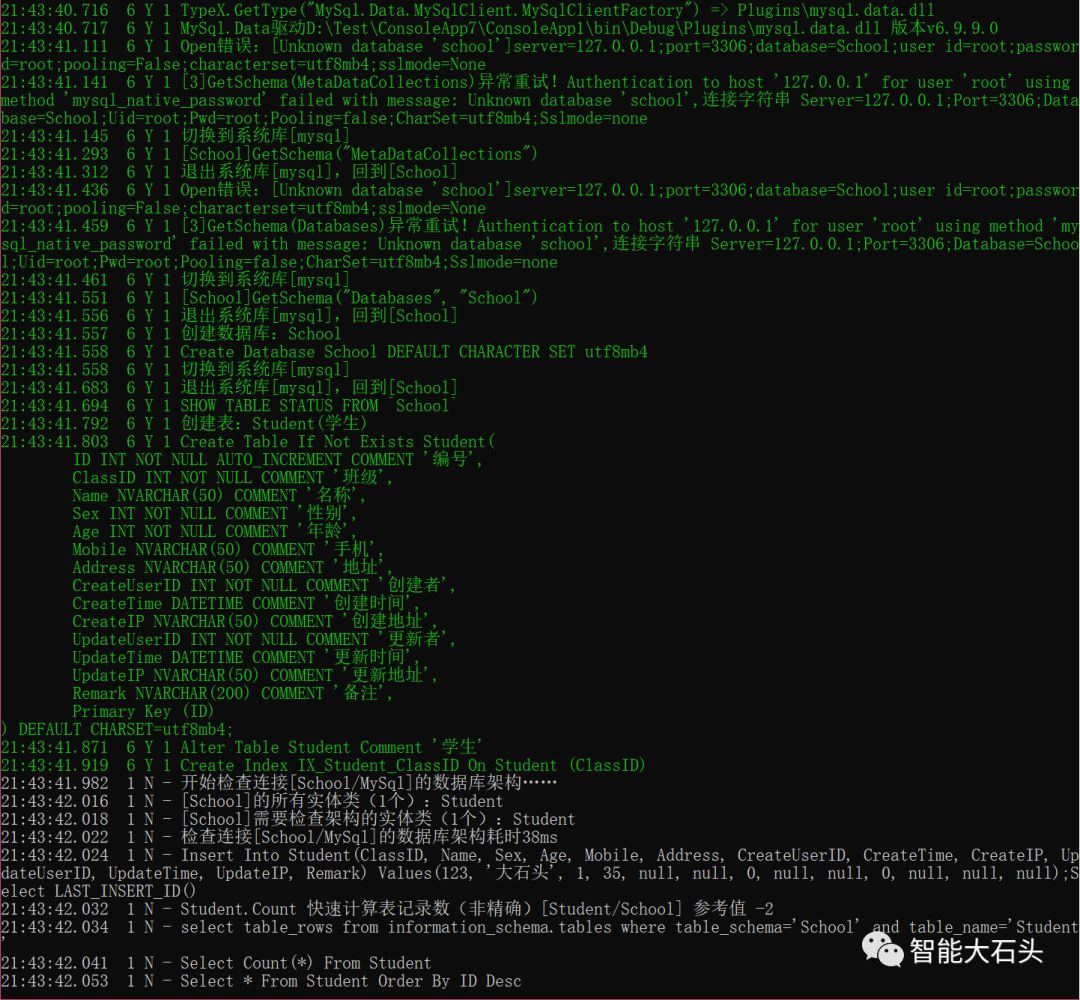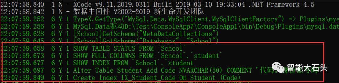 前面的几个SHOW,就是XCode的正向工程,取得数据库表结构,然后跟实体类结构对比,不相同时执行反向操作。