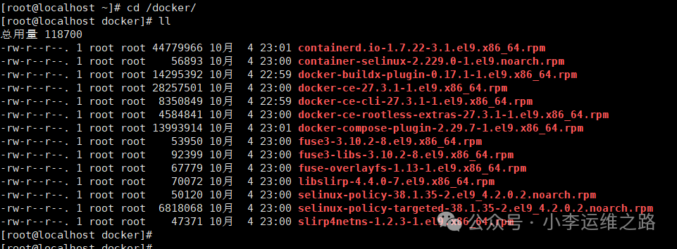 [root@localhost ~]# yum install --downloadonly --downloaddir=/docker docker-ce -y