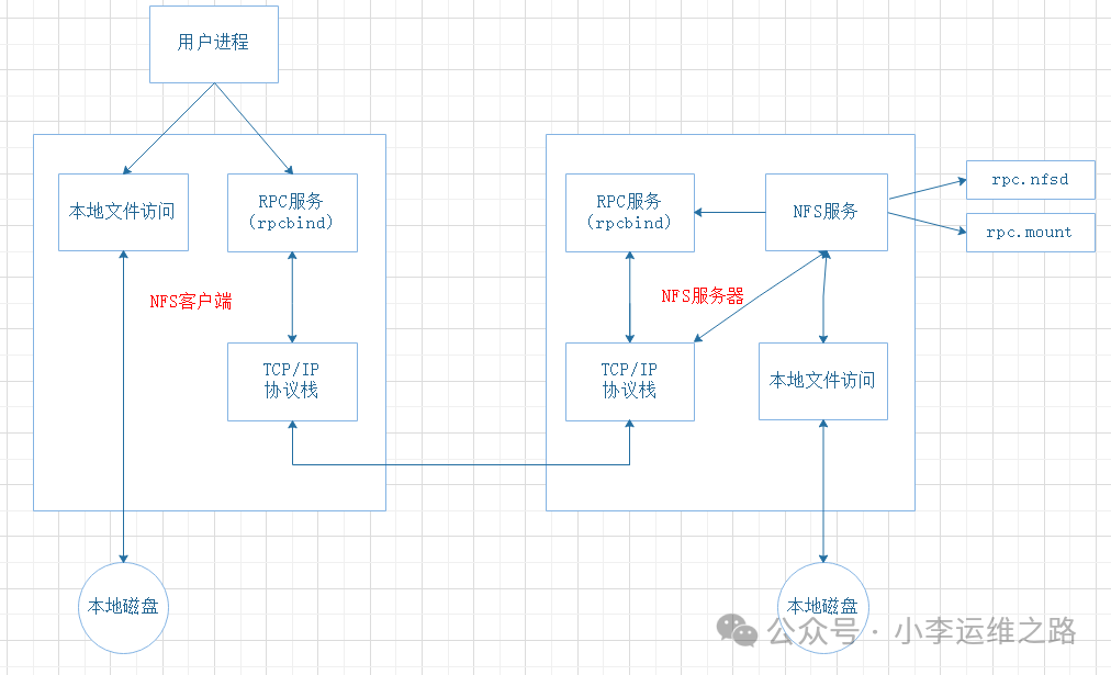 RPC(Remote Procedure Call)即远程过程调用。RPC服务会指定一个端口(111)来对外提供服务,这个服务主要功能就是去记录NFS服务器端上每个NFS功能所对应的端口,并且通知给客户端,让客户端可以连接到正确的端口上去。