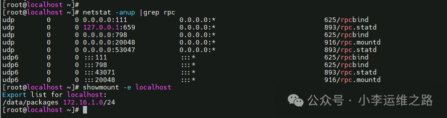 [root@nfs-client ~]# yum install -y nfs-utils rpcbind[root@nfs-client ~]# showmount -e 172.16.1.27
