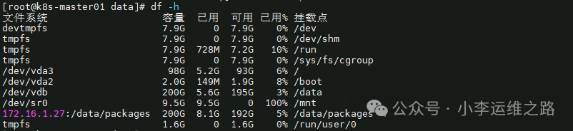 [root@nfs-client ~]# mount -t nfs 172.16.1.27:/data/packages data/packages