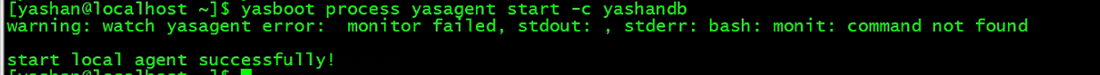 warning: watch yasagent error: monitor failed, stdout: , stderr: bash: monit: command not found