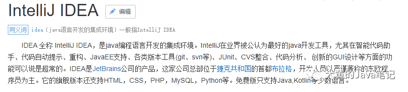 在工作中,我们用的比较多的开发工具当属IDEA,先来看看百度百科对它的介绍。