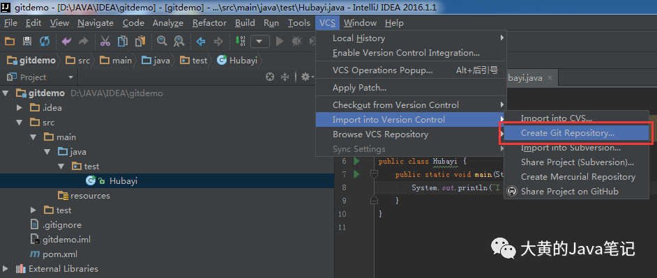创建好项目,选择VCS - > Import into Version Control -> Create Git Repository