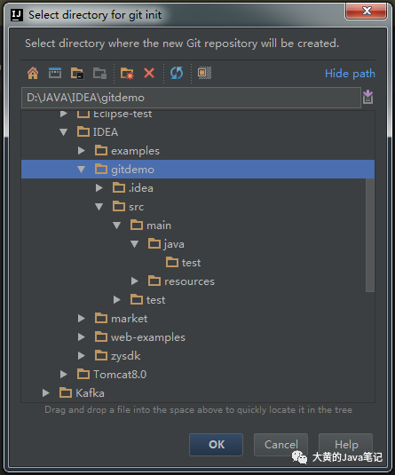 点击OK后创建完成本地仓库,注意,这里仅仅是本地的。下面把项目源码添加到本地仓库。